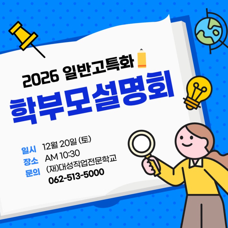 📢 [예비 고3 학부모 설명회 안내] 안녕하세요, 대학입시의 TOP 고려학원입니다. 현 고2(예비 고3) 학부모님과 학생 모두 혼란스러운 입시 환경 속에서 #대입 추세와 자녀에게 적합한 전형 등에 대해 고민이 많으시죠? 💡 그래서 준비했습니다! #고려학원 에서 📚 27학년도 입시 분석 & 대입 성공전략 #입시설명회 를 진행합니다! 😀 이번 설명회를 통해 앞으로의 #대입 준비 방향을 확실히 잡아보세요! - 📅 일시: 2025년 12월 9일(화) 오후 8시 📍 장소: 고려학원 고등관 세미나실 🎯 대상: 현 고2 학생 & 학부모님 📱 문자예약: 010-6296-6781 (학교 / 학년 / 학생이름을 함께 보내주세요!) - ※ 자세한 내용은 하단 블로그에서 확인하세요! https://blog.naver.com/kevin-t/224087347916