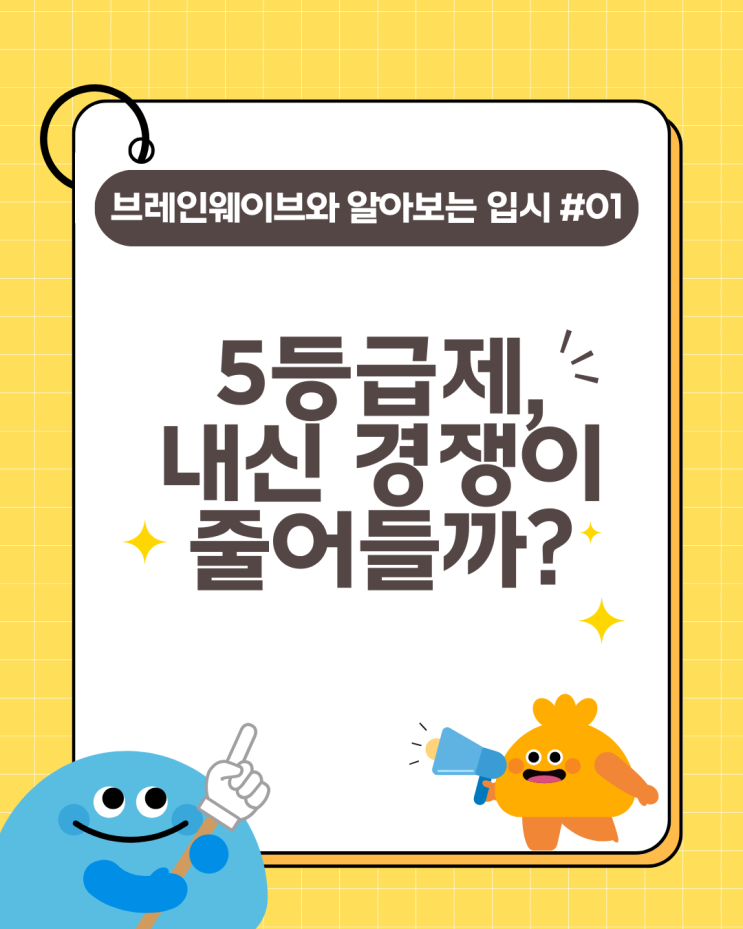 안녕하세요~! 성남시 중원구 하대원동에 위치한 관리형 학원, 브레인웨이브 러닝센터입니다. 최근 교육 이슈 중 하나가 바로 고등학교 내신 5등급제인데요. “등급을 9개에서 5개로 줄여서 학생 부담을 낮추겠다” “성취 중심 평가를 강화하겠다”는 취지로 들리면서, “아, 이제 내신 경쟁이 조금은 완화되겠구나” 라고 생각될 수 있어요. 하지만 대학 입시 구조를 조금만 들여다보면 이야기가 달라집니다. 실제 입시에서 중요한 것은 ‘등급’이 아니라 ‘백분위(상대적 위치)’ 이기 때문입니다. 오늘은 학부모님들이 가장 궁금해하시는, “등급이 5개뿐이니, 이제 1점 차이로 등급이 갈리는 일은 줄어들겠구나.” “아이 내신 스트레스도 좀....... <img src="https://blogthumb.pstatic.net/MjAyNTEyMTFfMjEy/MDAxNzY1NDMzNDM4ODc1.M6ge1gOiJQiuYmXIhq70tEDRtt1ppUZsR8gADGVefcwg.dKeNpkfoMxgjKHXujdzSNpGoXWOBKKJ6IunG5BBY3x4g.PNG/2026%C7%D0%B3%E2%B5%B5_%BC%F6%B4%C9_9%BF%F9_%B8%F0%C0%C7%C6%F2%B0%A1_%C0%C0%BD%C3%BB%FD_%C1%A2%BC%F6_%BE%C8%B3%BB%C0%C7_%BB%E7%BA%BB.png?type=s3" />
