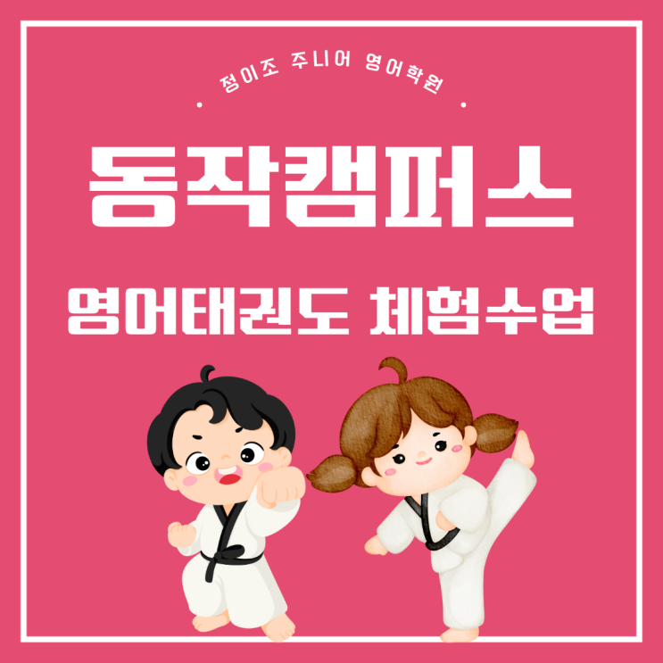 국가대표 No.1 태권도와 함께한 정이조주니어 We Can Sport! 안녕하세요, 동작 정이조주니어 영어학원입니다. 지난 11월 22일 토요일, 저희 학생들은 We Can Sport! 이라는 주제로 특별한 체험 수업을 진행했습니다. 이 수업은 “언어 + 경험 기반 학습”의 일환으로, 영어와 신체활동을 자연스럽게 연결해 아이들이 즐겁게 배우는 시간이었어요. 국가대표 No.1 태권도장에서 시작된 활기찬 하루 이번 체험수업은 국가대표 No.1 태권도장의 협조로 진행되었습니다^^ 토요일 오전부터 도장에 모인 아이들은 밝은 표정으로 서로 인사를 나누며 들뜬 모습이었어요. 먼저 도착한 아이들은 몸을 풀어보며 수업을 기대하고 있습니다. 저 뒤에 원어민 선....... <img src="https://blogthumb.pstatic.net/MjAyNTEyMDVfMjY4/MDAxNzY0OTI5NDQzNTgx.YrCaevE44Fp2WsMAZ5uKBbZHrmVOuDW620qHL1pKDdYg.SpNBRQOSqD4gyO54jz7Qty0OU6vNGhB_XREPc43uIaEg.PNG/4545.png?type=s3" />