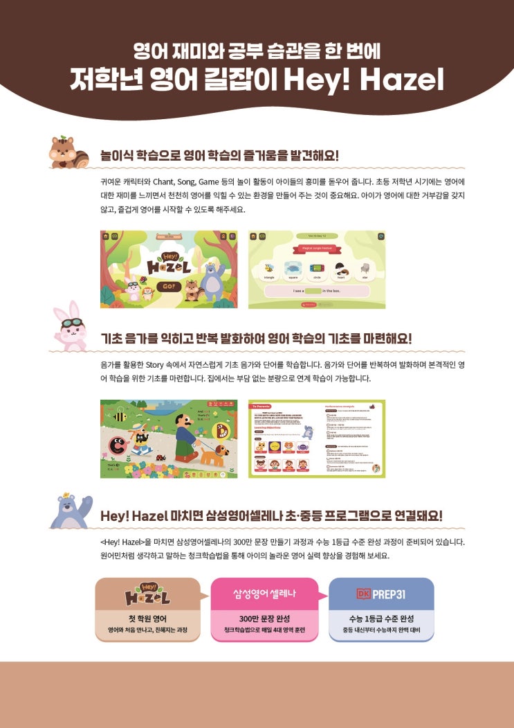 안녕하세요 삼성영어 셀레나 펜타힐즈어학원 Eva샘이에요 전에 유치부 및 초등 저학년을 위한 삼성영어셀레나의 Hey! Hazel! 프로그램 안내 글을 적은 적이 있는데요 어느 듯 Hazel이 출시된지도 1년이 되어 갑니다. Hey! Hazel 교재는 그 자체만으로 아이의 등의 상상력을 자극하는 삽화와 흥미를 잃지 않도록 도와주는 다양한 활동들을 포함함은 물론 원어민의 소리를 따라 하며 영어의 정확한 음가를 익히게 돕고 다양한 일상회화 표현을 가지고 있는 훌륭한 리딩 교재이지만, 가르치는 선생님이 준비가 되어 있지 않으면 프로그램의 진가를 발휘할 수 없다고 생각합니다. 그래서 삼성영어펜타힐즈 선생님들은 여러 원장님들, 선생님들과 함께....... <img src="https://blogthumb.pstatic.net/MjAyNTEyMTJfMTQ5/MDAxNzY1NTExNDk0NzMy.eLPQ2TIz4v5q4T_h8wP39TQL2J8xOEX0nmDvFpxGxF0g.A4ONTNIyrP0RQlN2v1UXx46kZ9Z90sYZj-C1AXXdqi0g.JPEG/%C0%FC%B4%DC%C1%F6_%C7%EC%C0%CC%C7%EC%C0%CC%C1%F12P_2.jpg?type=s3" />