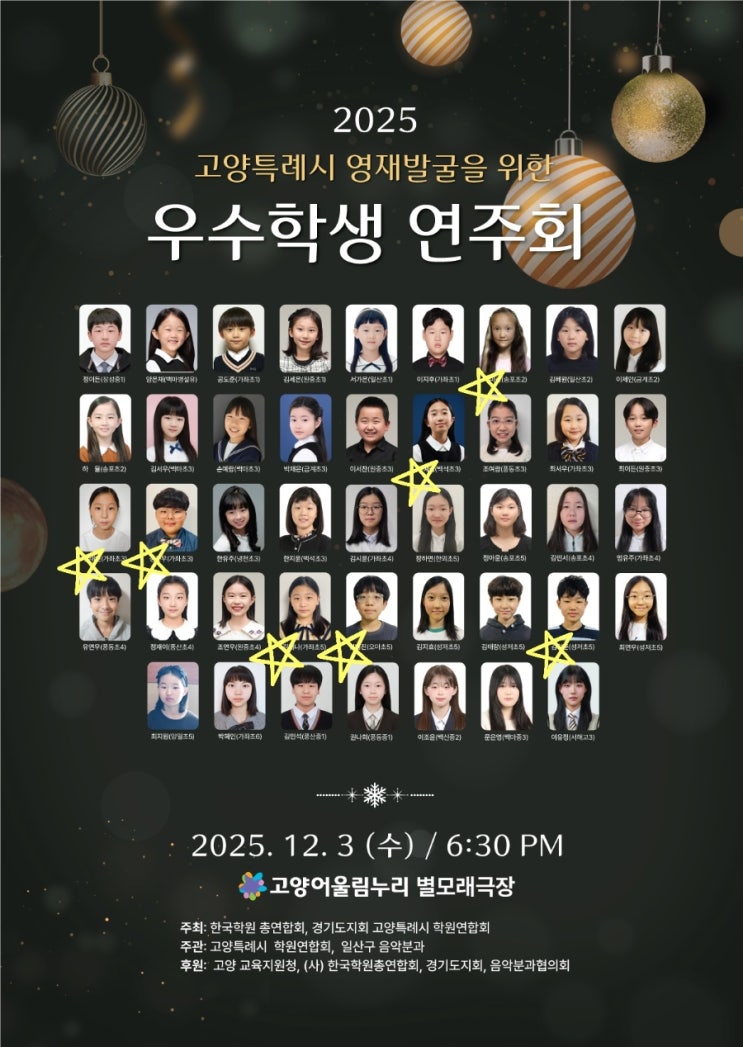 2025 고양특례시 일산구 우수학생 연주회 축하합니다 ✨12/3일(수) 고양어울림누리 별모래극장