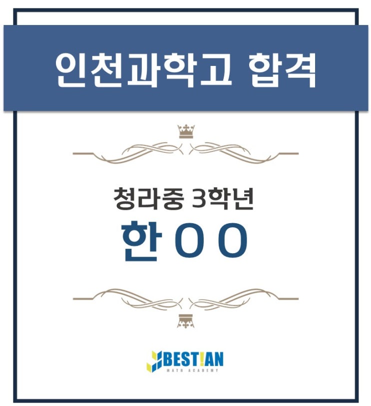 인천과학고 합격! 역시 베스티안은 결과로 보여드립니다! ㅣ 청라수학학원 ㅣ 청라 베스티안 수학학원