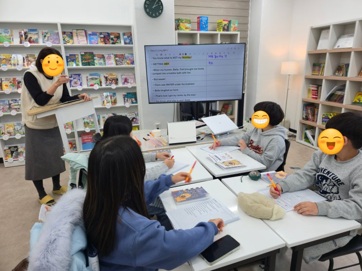안녕하세요. 라움영어 입니다. 저학년 그룹수업 현장을 공개합니다~ Diary of a Pug 책소개 교재 선정 이유 1) 강아지 ‘퍼그’의 시점으로 쓰인 일기 형식 강아지의 생각과 감정이 그대로 담긴 일기(diary) 스타일 아이들에게 친근하고 웃음 나는 표현이 많아 재미난 요소가 큼 2) 글자 크고 그림 많아 ‘책 읽기 두려움’이 없는 구조 글보다 그림이 먼저 눈에 들어와 영어 초보자도 쉽게 접근 만화책처럼 구성되어 읽기 장벽이 매우 낮음 3) 반복되는 문장 패턴으로 자연스러운 표현 습득 예: “I’m not happy about this.” “Pug problem!” 이런 반복 문장이 아이들 영어에 익숙함을 가지고 자신감을 얻을 수 있습니다. 책내용 맛보기>....... <img src="https://blogthumb.pstatic.net/MjAyNTEyMTBfMjA3/MDAxNzY1MzYxOTMyMjU0.egM6ClKhbsMGy3bU92IGHmbGO8ruPK-hrtCJDtdK7XUg.nui6D46WhwRM9XtQh-1qX5ALNWtpg2fxMoQ0B_5vBNEg.JPEG/KakaoTalk_20251210_190157847_03.jpg?type=s3" />