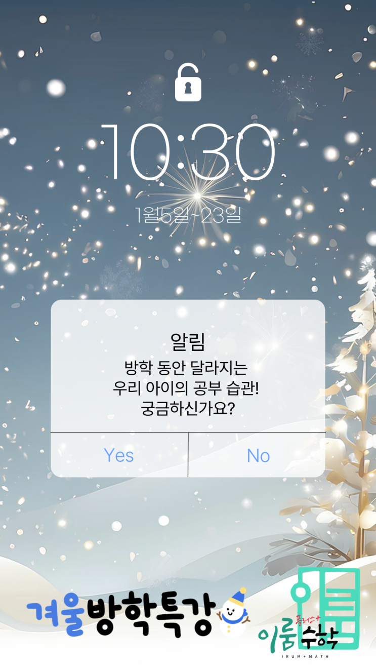 이룸플러스 수학학원입니다. 2025년 시작이 엊그제 같은데 벌써 12월이네요 ㅠㅠ 곧 겨울방학도 시작입니다. 겨울방학이 시작되면 아이들은 집에서 보내는 시간이 많아집니다. 하지만... 인강을 틀어만 두고 제대로 듣고 있는지, 부모님 입장에서는 늘 걱정이 되시죠. 이룸플러스수학학원 초등부에서는 이런 고민을 덜어드리기 위해 방학 때마다 하는 이룸의 인기 특강 국어, 사회, 과학 겨울방학 특강 을 이번 겨울방학에도 준비하였습니다. 국사과 방학 특강 수업 방식 안내 국사과 방학 특강은 태블릿을 활용한 개념 강의 수업으로 진행됩니다. 인강 수업이지만 ✔️ 지면 교재와 병행하여 ✔️ 교재에 직접 필기하며 ✔️ 개념을 하나하....... <img src="https://blogthumb.pstatic.net/MjAyNTEyMTNfMzcg/MDAxNzY1NTk4OTc2MDcw.2YWaCCAzQn9D2NN_pBPXeoG3JoFh1dN0P4grZK5aHb0g.HmjRbi9A1YRRn-GM2ABT-epNpUsSu3Dnf6QFxbRiIbwg.PNG/%C1%A6%B8%F1%C0%BB-%C0%D4%B7%C2%C7%D8%C1%D6%BC%BC%BF%E4__%BA%B9%BB%E7%BA%BB-001_%281%29.png?type=s3" />