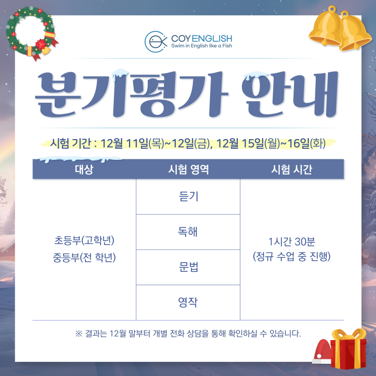 수성구범어동영어학원 코이영어 12월 하반기 형성평가 안내