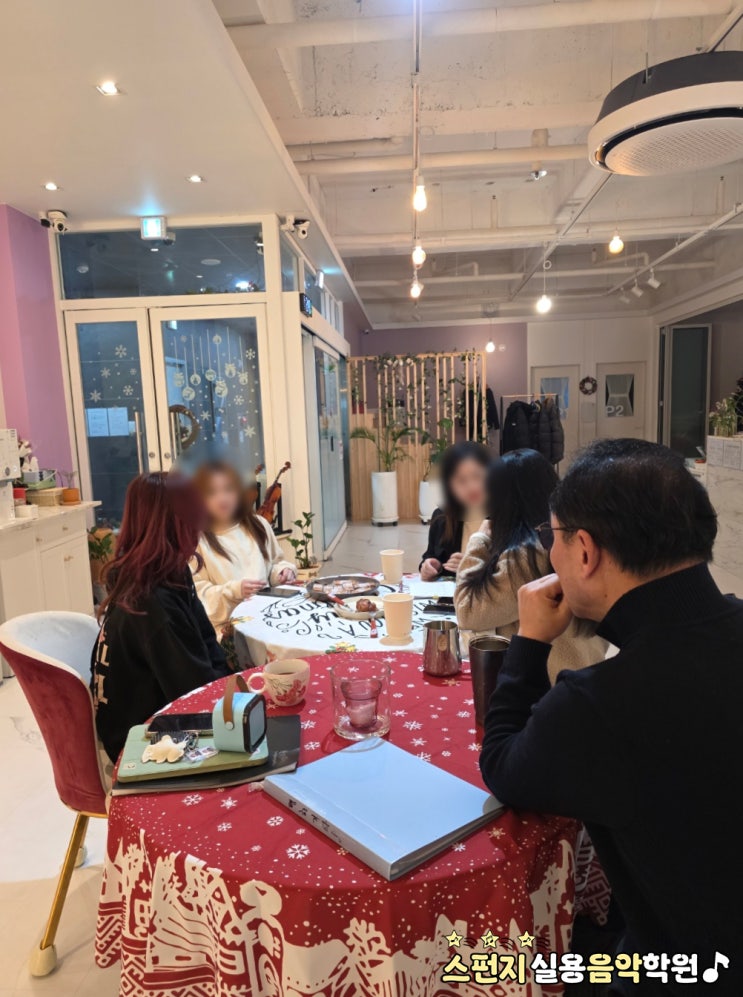 스펀지 음악 학원 안의 아름다운 작은 학교 "평화음악학교" 20주 차 수업엔 다섯 명이 출석하였습니다. 12월 31일에 있을 평화음악학교의 연주회를 위한 연습을 하느라 다섯 명의 수업이 50명의 수업을 하는 것처럼 열기가 뜨거웠습니다. 오늘은 한국에 온 지 3개월밖에 되지 않은 신입생이 피아노 수강을 위해 스펀지의 문을 열고 들어왔습니다. 너무도 자연스러운 한국어 표현에 놀람과 감동을 동시에 받았답니다. 환영합니다. ❤ ▶ 평화 뮤직 아카데미 정기 연주회 날짜 : 12월 31일(수) 12시 ▶ 장소 : 스펀지 음악 학원 ▶ 연주회 내용 : 각자 그동안 배운 악기를 연주합니다. ▶ 스테이크 점심 식사가 준비됩니다. 친구들을 초....... <img src="https://blogthumb.pstatic.net/MjAyNTEyMTVfODMg/MDAxNzY1NzI1NjA0NDQ2.vyJhjwBtttFffbx6U23q6xLIl4YiJ239FZMdi9jB09cg.BMZ3DEnDzVMT28LrntdL5SST5zPtx0VOPyp0IHCO4y0g.JPEG/KakaoTalk_20251214_194555538_12.jpg?type=s3" />