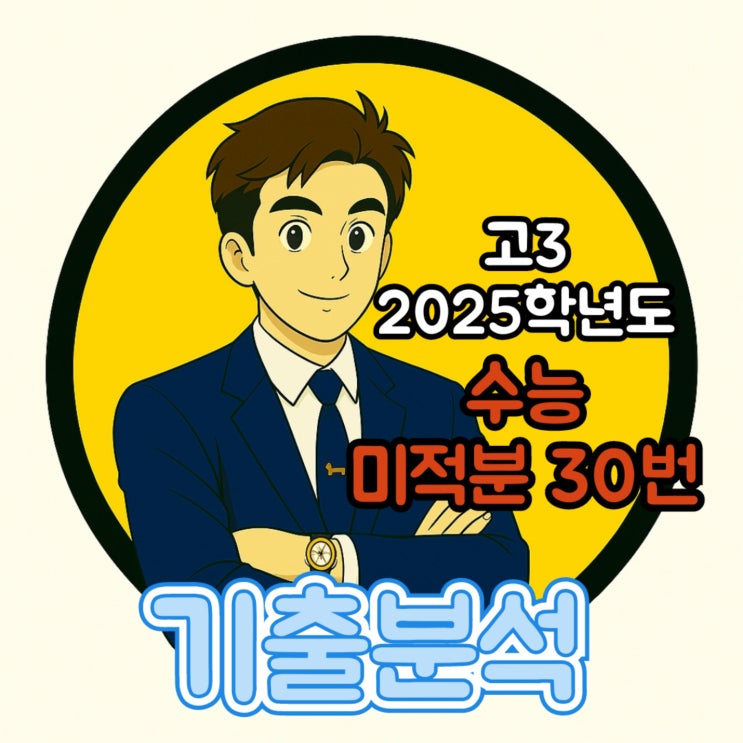 2025학년도(2024년) 수능 미적분 30번 분석 (핵심손풀이, 총평, 동영상강의) 총평 ■ 난이도 : (상) 2025학년도 수능에서 상위권 변별을 확실히 담당한 문항입니다. ■ 어떤 사고력을 평가하는 문제였나? 이 문제는 단순히 미분을 계산하는 능력이 아니라, 함수의 전체 파형을 이해하고, 주기·도함수·극값 구조를 종종합적으로 판단하는 능력을 요구했습니다. ✔ 도함수의 0이 되는 조건 분리 ✔ a, b를 제한 조건에서 추론 ✔ 주기성 판단 ✔ 값의 개수 파악 ✔ 최종 식 풀이 이 모든 과정이 이어져야 풀리는 구조이기 때문에 상위권 학생들도 실수하기 쉬운 요소가 많았습니다. ■ 출제 경향 분석 ✔ ‘삼각함수 + 합성함수 + 주기 + 도함....... <img src="https://blogthumb.pstatic.net/MjAyNTEyMDJfMTMg/MDAxNzY0NjE0MzMxOTYw.SvnNsQYnbZ3BgrPNCqKXCbOgAcxygZWI6RTcMlDDLeYg.0-hH3CuM0rSnon2A379aF2qd5CvmJUun_zWsfXcw_7Ug.JPEG/KuKuPic20251202033318.jpg?type=s3" />