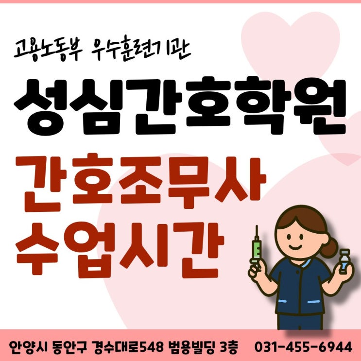 간호조무사 수업시간 어떤 내용을 어떻게 배울까❓ 안양간호학원을 대표하는 성심은 실습을 제대로〰잘〰 알려주는 간호조무사학원으로 워낙 유명하잖아요! 그래서 오늘은 실제 간호조무사수업시간을 사진으로 찍어왔습니다. 기초부터 차근 차근 배웠습니다. 성심을 대표하는 수업이었던 주사수업이었는데요 주사를 다루기 전에 약물을 뽑는 방법부터 차근차근 배웠습니다. 실제 병원에서 쓰이는 것과 동일한 '앰플'이라는 유리병에 대해 배우고 선생님의 시범 후에는 직접 간호조무사 국비지원 학생들의 실습이 이루어졌습니다 간호조무사 수업시간 후기 "병원에서 본 것과 동일해서 현장감이 있었어요." "직....... <img src="https://blogthumb.pstatic.net/MjAyNTEyMDVfMzcg/MDAxNzY0OTA3MjA0MTg3.13u93PTciLc3wqTBHQglbuBfdeAZ1R5oq1KS4ehJrcAg.LwPnQgNgDAotXWPtf2fl-TD6rJl8k8u_GoQv_rjBxigg.JPEG/1.jpg?type=s3" />