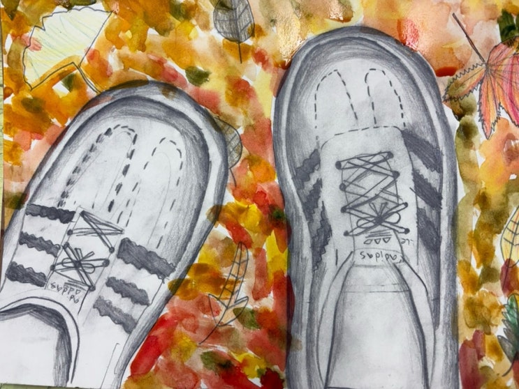 매일 신는 운동화. 고생하는 신발을 살 때 말고는 자세히 보는 일이 없죠? 이번 수업에서는 고생하는 내 신발을 자세히 보고 관찰해 그리는 드로잉 수업을 진행했습니다.^^ 신발을 책상 위에 올려놓을 수 있는 유일한 기회! "선생님~! 책상 위에 신발 올려놓으면 발 냄새날 수 있는데 괜찮아요?" "하나도 안 나는데~?!" 진짜 안 나더라고요~!심지어는 약간의 깨끗한 세제향과 어떤 친구는 상큼한 잴리향이 났습니다ㅋㅋㅋ 어른들 신발에 선 청국장향이 나는데 어린 친구들 신발에선 향기로운 향이...! 신발을 그리고 낙엽의 형태를 관찰해 그려줍니다. 신발의 형태그리가 어렵다고 했던 친구들도 중심형태부터 잡고 세세한 표....... <img src="https://blogthumb.pstatic.net/MjAyNTExMjFfMTU2/MDAxNzYzNzEyMDc0MDk4.omRXf3HOE3CdvNAtJaMmyqasoyYLwiQkWEhoyPrRb14g.7MRrjVB89fMvyqitjGkwCbFZny79NoC_X-Hjnqb3wYkg.JPEG/output%A3%DF3514328290.jpg?type=s3" />