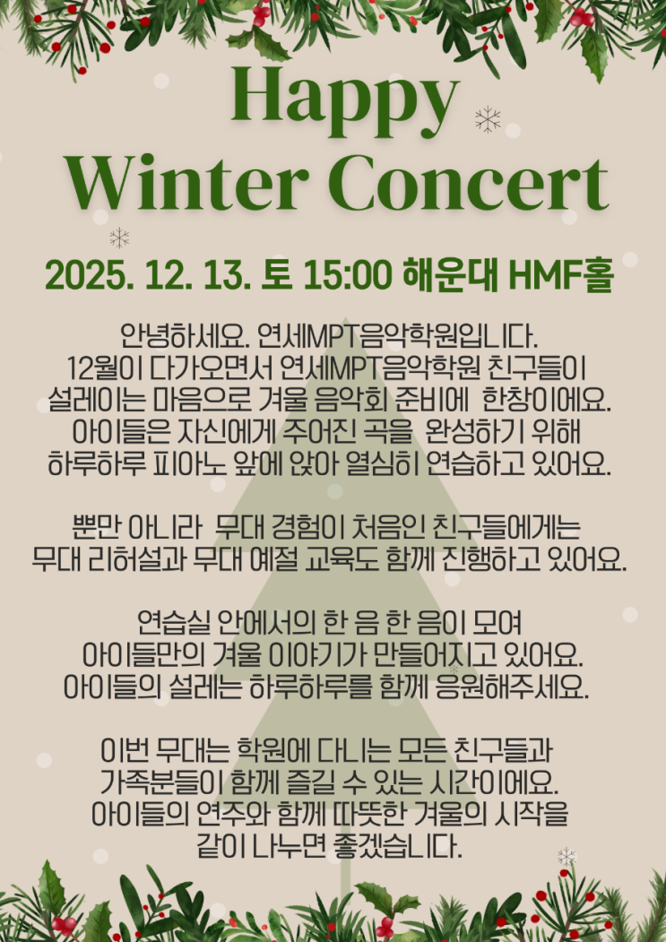해운대좌동피아노학원/해운대음악학원겨울음악회/해운대피아노학원정기연주회