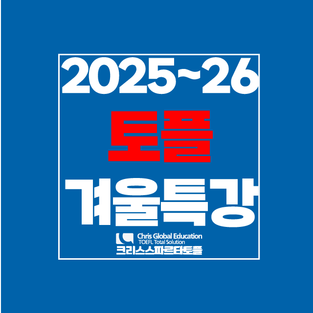 안녕하세요, 강남 최단기 고득점 토플, 크리스스파르타토플입니다. 안녕하세요, 강남 최단기, 고득점 관리형 스파르타토플, 크리스스파르타토플입니다. 토플 전문가 크리스 원장님 직강 2025년 겨울방학특강이 현재 사전 예약중입니다. 크리스스파르타토플에서는 2026년 1월 개정되는 토플시험을 반영한 겨울방학 특강 사전예약을 진행중에 있습니다. 현재 크리스스파르타토플에서는 2026년 1월 개정 전 기존 토플시험을 준비하는 반과 개정 내용을 반영한 토플반으로 수업을 진행중에 있습니다. 토플시험에서 본인이 원하는 목표점수를 가장 빨리 만드는 방법은, 1. 전문성있는 프로페셔널한 토플강사가 진행하는 수업과, 2. 수업후 수업내용 복....... <img src="https://blogthumb.pstatic.net/MjAyNTEyMDRfODIg/MDAxNzY0ODM0Njg4MDI0.pQAfwUA3MxYt4gR5IJXJnMjj7r6C_Eh_-w1J7t-tgHcg.-HzBLnciJPbVOK5Xdms9rvBnpNMOPGlcnCcRyKoo4vkg.PNG/202526%C5%E4%C7%C3%B0%DC%BF%EF%C6%AF%B0%AD.png?type=s3" />