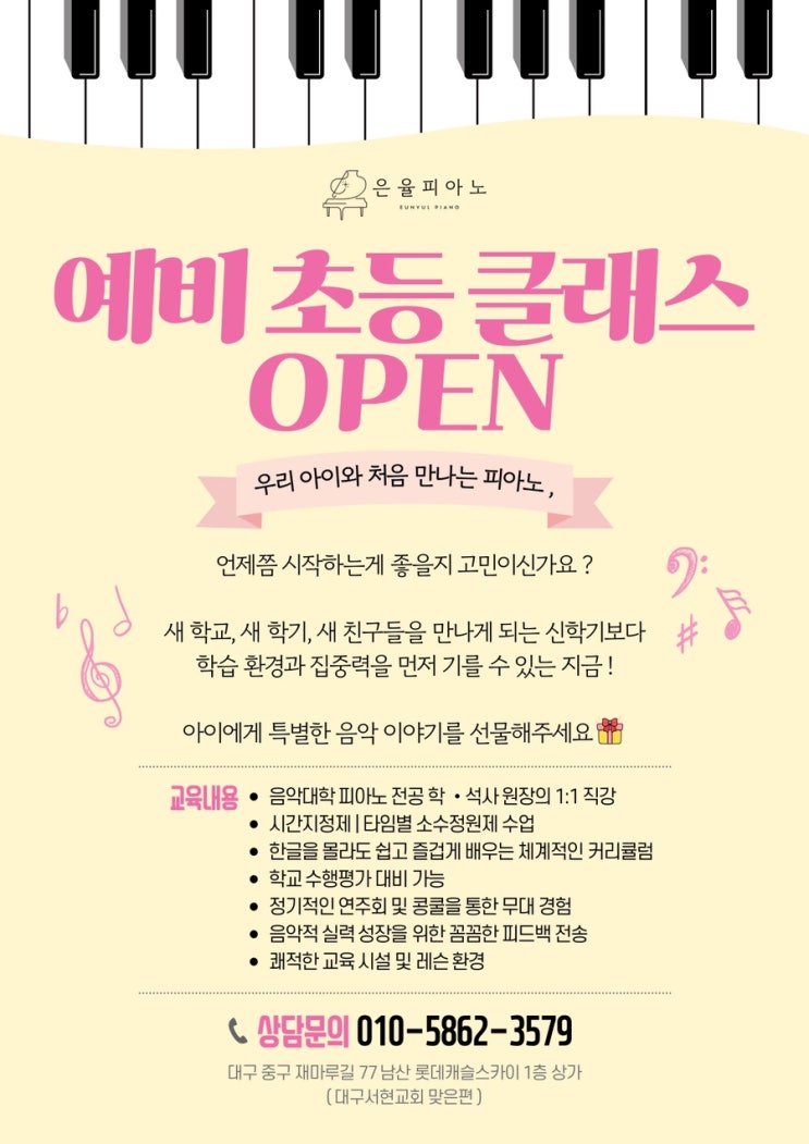 대구 남산초 명덕초 근처 피아노 | 예비 초등 피아노 클래스 오픈 안내
