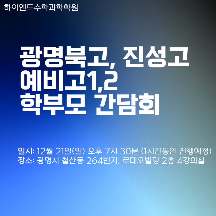 [광명북고·진성고 예비고1,2 핵심 설명회] 겨울방학부터 달라지는 고등 내신 전략 공개