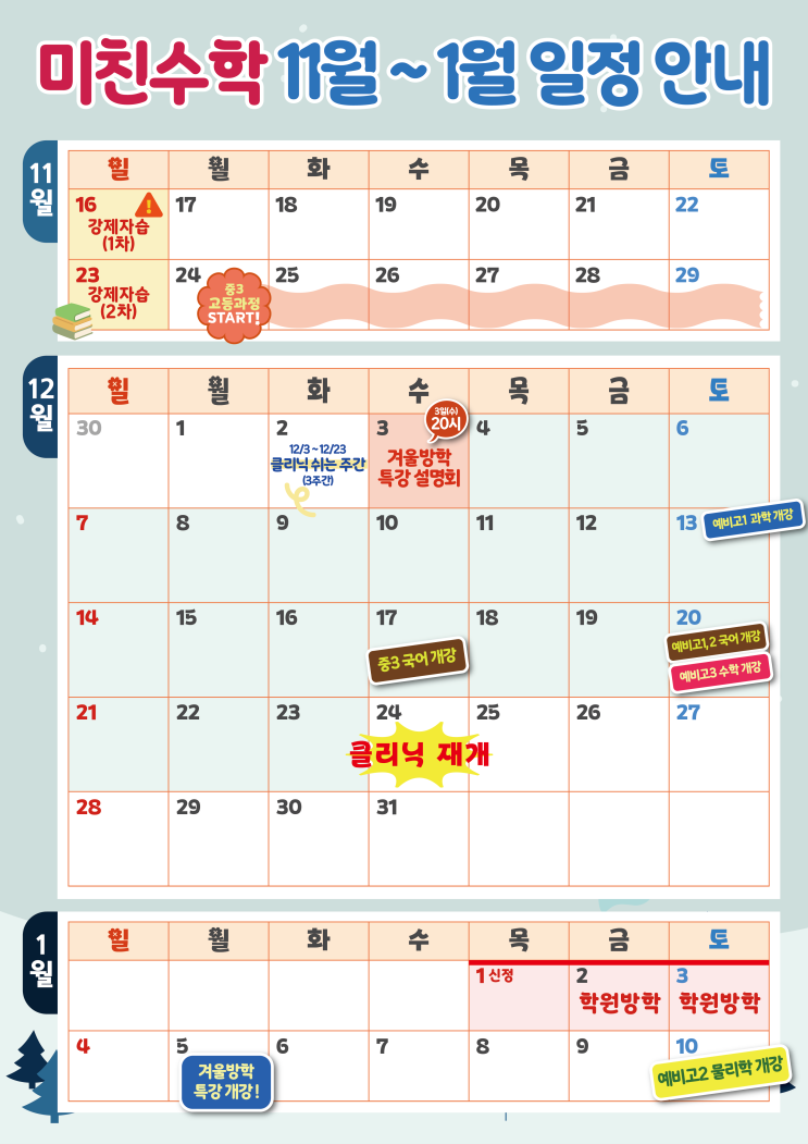 수미사 중계관] 은행사거리 수학학원 겨울방학 특강안내