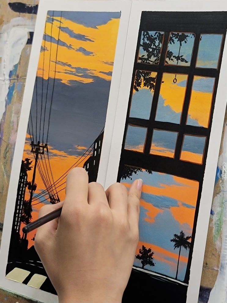 안녕하세요 :) 위피 울산 삼산점입니다~ 이번 포스팅은 울산 남구 성인 미술 학원 위드피아레트 울산 삼산점 수강생분이 아크릴 물감으로 그린 노을 풍경화 입니다! 주황빛 하늘과 짙어지는 그림자의 대비가 정말 멋지고, 창문 너머로 보이는 노을과 도시 풍경까지 디테일 하나하나가 표현되어 있어요 섬세한 실루엣 표현과 생동감 있는 노을 색감 덕분에 창문 너머의 풍경과 거리 속 풍경이 서로 다른 매력으로 담겼답니다✨ 캔버스지 위에 아크릴 물감 특유의 선명함이 잘 살아나 더욱 분위기 있는 작품이 되었어요! 울산 남구 성인 미술 학원 위드피아레트 울산 삼산점에서는 처음 아크릴을 시작하시는 분들도 차근차근 배워....... <img src="https://blogthumb.pstatic.net/MjAyNTEyMTFfMTEx/MDAxNzY1NDQ3OTkzOTY3.v_vWdvK1SRR5lo46JWSJDDqQo18_ZAfvzrAEE1Gc6B8g.UQ-1fSxaXJLEHD9wAoEdSS80DKHOPPhjo9dbnBFMIN8g.JPEG/20251211-2.jpg?type=s3" />