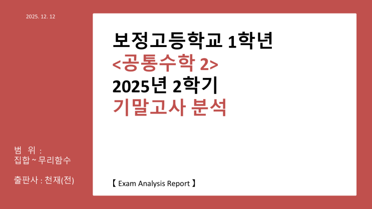 2025년 보정고1 2학기 기말고사 공통수학2 기출분석