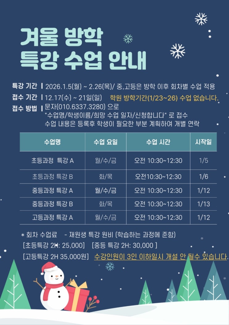 겨울방학 특강 안내