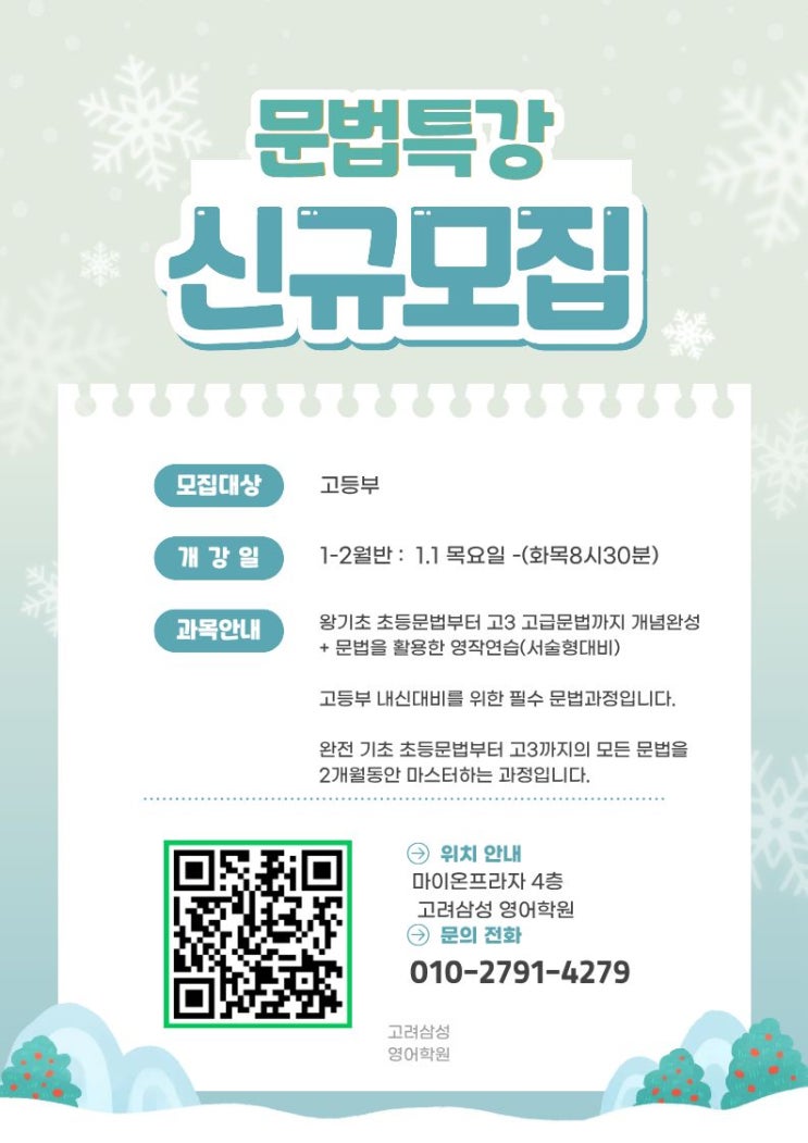 수원고 영어내신 전문학원 - 고려삼성 영어학원