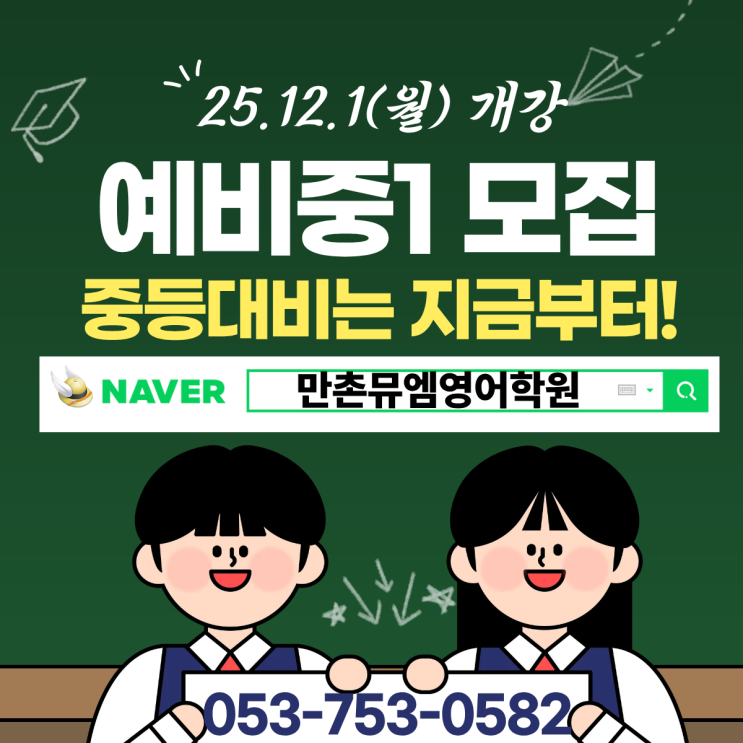 [예비 중1모집] 중등영어 우리학원에서 체계적으로 시작하세요!( 중앙초앞 만촌뮤엠영어학원)