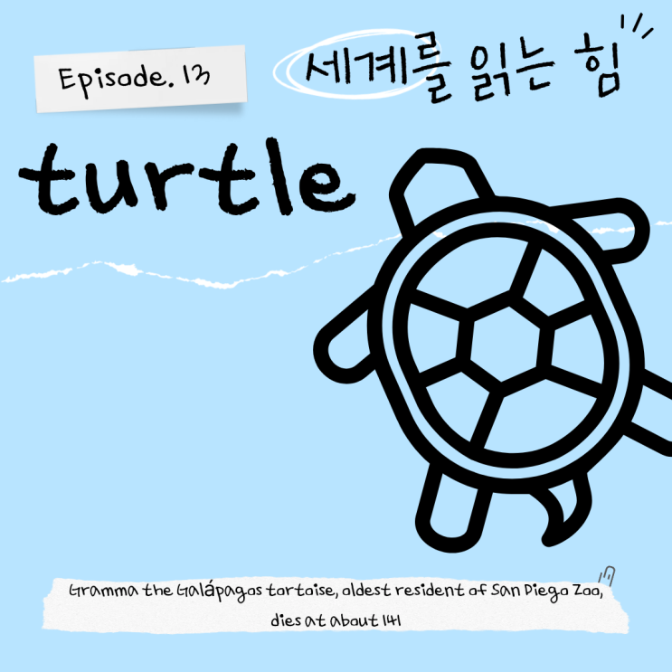 안녕하세요! 인디고 영어학원의 Megan 선생님과 Ted 선생님입니다. 아이들에게 영어를 가르치는 것은 단순한 수업이 아니라, 그들의 세상을 넓히고, 호기심을 자극하는 과정이라고 생각해요. 그래서 저희는 매주 아이들과 함께 배울 내용을 꼼꼼하게 준비하고 있어요. 오늘은 "세계를 읽는 힘"시리즈, "Gramma the Galápagos tortoise, oldest resident of San Diego Zoo, dies at about 141!"을 같이 읽어보는시간을 가져봅시다. Gramma the Galápagos tortoise, oldest resident of San Diego Zoo, dies at about 141 After more than a century of munching on her favorite foods of romaine lettuce and cact....... <img src="https://blogthumb.pstatic.net/MjAyNTExMjVfOTgg/MDAxNzY0MDY5ODMxMzQy.BIa-gk3N2wOPsOw4yvzE84jF6Mi5ggqdG1AHhRNP7Lwg.YNkeKNBA1vPX-SP2fbUVcoFKT28h3MZKpoC42xOsr_4g.PNG/%C1%A6%B8%F1%C0%BB_%C0%D4%B7%C2%C7%D8%C1%D6%BC%BC%BF%E4.-5.png?type=s3" />