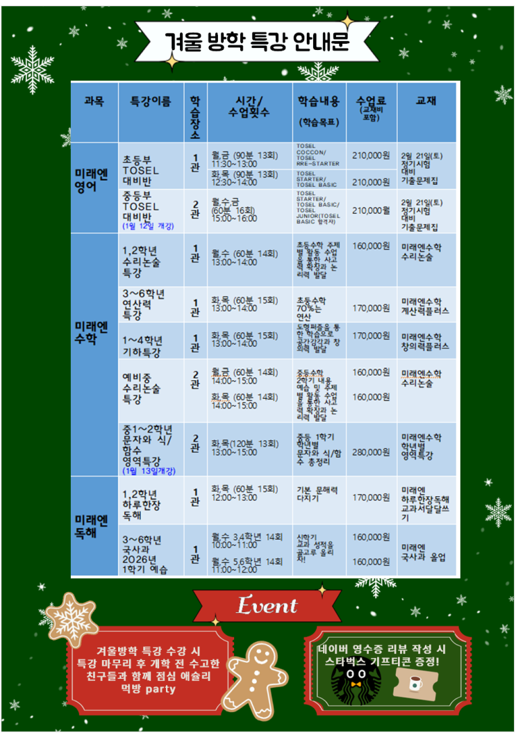 수미사 중계관] 은행사거리 수학학원 겨울방학 특강안내