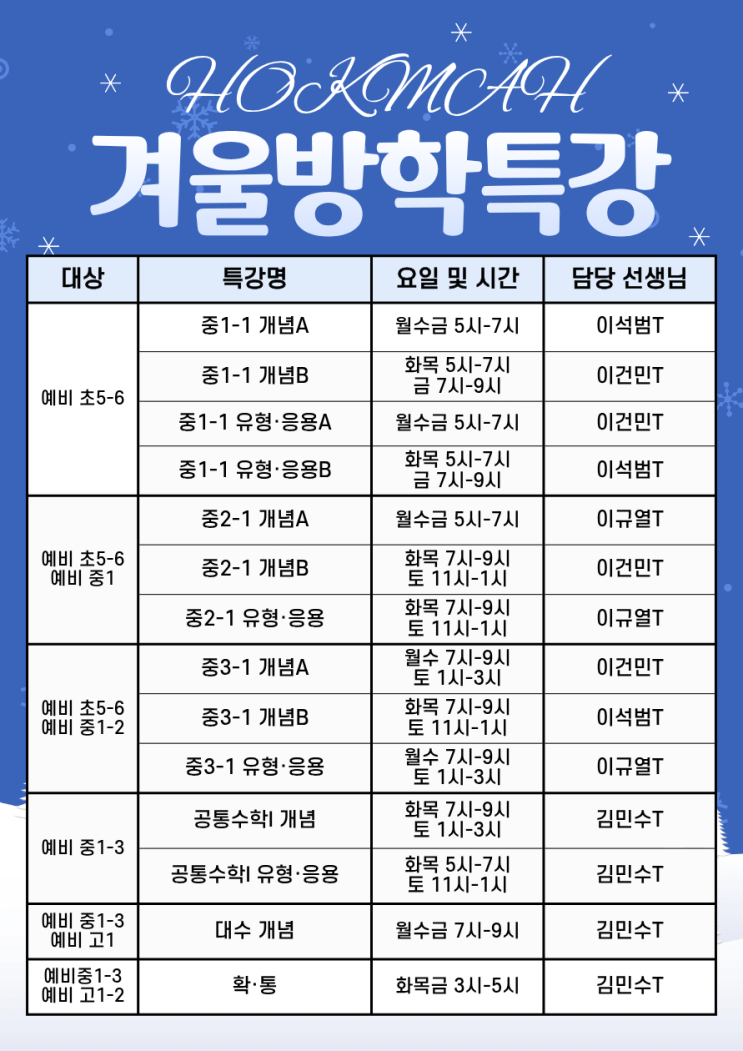 호크마에듀학원 겨울방학특강 안내 (수학)