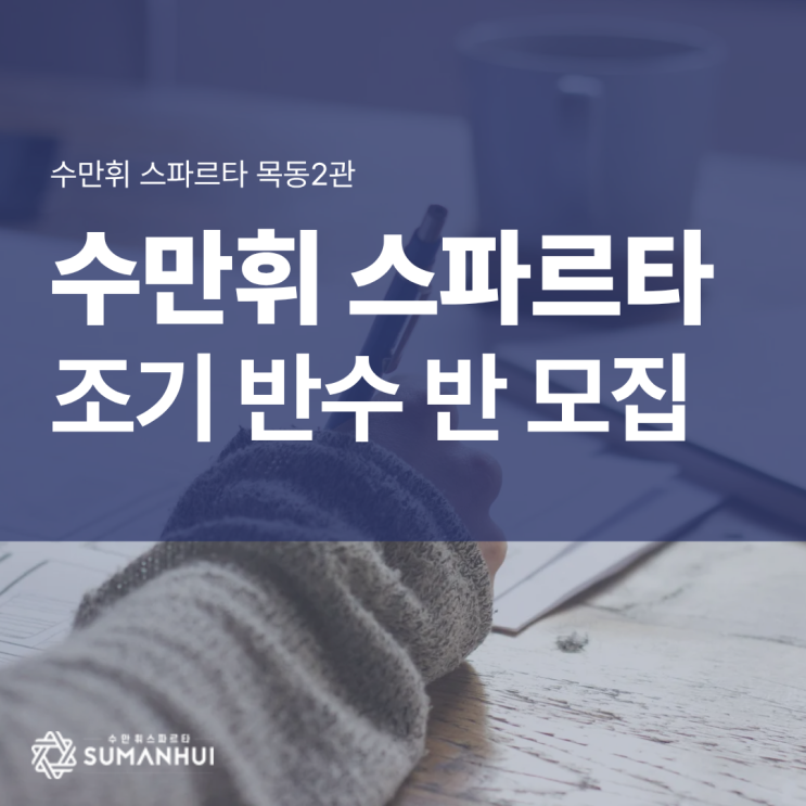 수만휘스파르타 목동2관 조기 반수반 모집 안내 (시즌2) 안녕하세요, 수만휘 스파르타 목동2관입니다. 다가오는 5월, 보다 효율적인 학습을 원하는 학생들을 위해 조기 반수반(시즌2) 모집을 진행합니다. 현재 학교 생활과 입시 준비를 병행하며 시간과 비용이 분산되고 있다면, 이번 기회를 통해 학습 방향을 재정비해보시길 권해드립니다. 특히 6월 모의평가 전까지의 기간은 학습 효율을 극대화할 수 있는 중요한 시기입니다. 개강 일정 2026년 5월 1일 개강 6월 모의평가를 앞둔 마지막 집중 학습 구간으로, 체계적인 계획 수립과 실행을 통해 성과를 끌어올릴 수 있도록 운영됩니다. ⏰학습 관리 시스템 일일 학습 계획 작성 및 제....... <img src="https://blogthumb.pstatic.net/MjAyNjA0MTNfNjcg/MDAxNzc2MDc4NzQyMDEx.Iyjk1iyUAS0T5H_dliIJqi0Do_ABJlZ6-qMbqxLKorUg.SDmWrDDbNNm_oQQRuf90oIdGxpiZtR3es28hqGOYh7Ug.PNG/%BA%ED%B7%CE%B1%D7_%B4%EB%C7%A5%C0%CC%B9%CC%C1%F6.png?type=s3" />