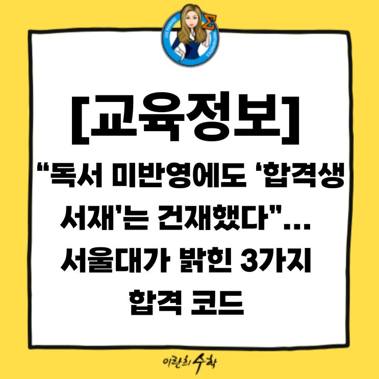 생활기록부 독서란 미기재에도 불구하고 서울대 신입생들이 ‘심층 독서’에 집착한 이유 https://www.kyobit.com/news/articleView.html?idxno=2928 https://naver.me/x8tOwMM2 <img src="https://blogthumb.pstatic.net/MjAyNTEyMTJfMjEw/MDAxNzY1NTM0NDgwMjAx.lVzqHOSYidR9n1Ed6-ZffYqK49Vmru5QHd5eoQ3aCsQg.I1W5OY8Utery5iY4RAF5FbYtLcjiI1wjnv7QtvAdwwkg.JPEG/%C1%A6%B8%F1%C0%BB-%C0%D4%B7%C2%C7%D8%C1%D6%BC%BC%BF%E4_-001_%284%29.jpg?type=s3" />