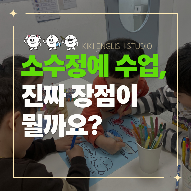 소수정예 영어수업, 진짜 장점이 뭘까요? - 원주혁신도시 영어학원 - 키키잉글리쉬 스튜디오 원장 선생님이 솔직하게 답해드려요 상담을 하다 보면 학부모님들께 이런 말씀을 종종 들어요 "친구들이랑 어울리면서 배우는 게 더 낫지 않나요?" "소수정예면 수업료가 비싼 거 아닌가요?" "소수정예 수업이 좋다는데… 정말 차이가 있을까요?" 맞아요. 요즘은 거의 모든 학원이 '소수정예'를 내걸고 있어요 그러다 보니 정작 소수정예가 왜 좋은 건지, 어떻게 다른 건지 잘 모르시는 경우가 많더라고요 오늘은 원주혁신도시 영어학원을 운영하면서 직접 경험한 이야기를 바탕으로, 소수정예 수업의 진짜 장....... <img src="https://blogthumb.pstatic.net/MjAyNjA0MTdfNjYg/MDAxNzc2Mzk2ODc5MTU3.3jehsEhkSxxcIOhrAA-8zqnSyuS7DM7qkjj_5mUB8nIg.48edNSMEmDt3xJ9FLLggojOcmJHvr24uHGSyYqs-mgog.PNG/%C5%B0%C5%B0%C0%D7%B1%DB%B8%AE%BD%AC.png?type=s3" />