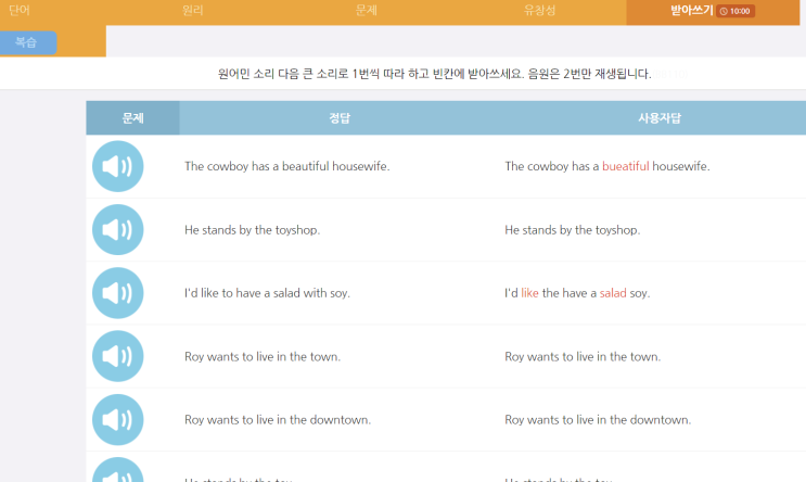 8차시 유창성 점검영상 자리에서 음원듣고 따라읽기 3번을 전체2번 하고 선생님께 유창하게 읽기 점검받습니다. 못 읽거나 틀린발음이 있으면 재학습입니다. 그래서 집중하고 잘 하는것도 있습니다^_^ 초등3학년 Trans English 3권 받아쓰기 결과입니다 형용사, 비교급, 최상급, 부사를 공부하는 책인데 비교급, 최상급에서 문장 길이가 길어져서 받아쓰기를 어려워합니다^^ 그래도 음원2번만 듣고 긴문장을 제법 많이 썼네요~ 관사만 틀리거나 아쉽게 한두개 틀렸네요 goooood!!! 시간제한은 없지만 음원으로 듣고 바로 써내는게 금방되는게 아닙니다. 매일 듣고 따라고, 쓰기 수업을 해서 훈련이 되어서 가능한것입니다. 다른 어학원을 2-3년 다....... <img src="https://blogthumb.pstatic.net/MjAyNTEyMDhfMTM4/MDAxNzY1MTg2MjIzNzQ4.sHDiAWh1fqIcXz3ZyhkijA7uIlIQvMTWpi7jwyq_vCwg.qm69buGoT0hOp5WOQGz7NMVQMoY1V_VBdb1ew2mIgf0g.PNG/image.png?type=s3" />