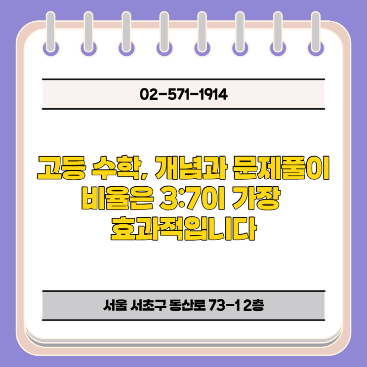 양재동고등수학 고등 수학, 개념과 문제풀이 비율은 3:7이 가장 효과적입니다