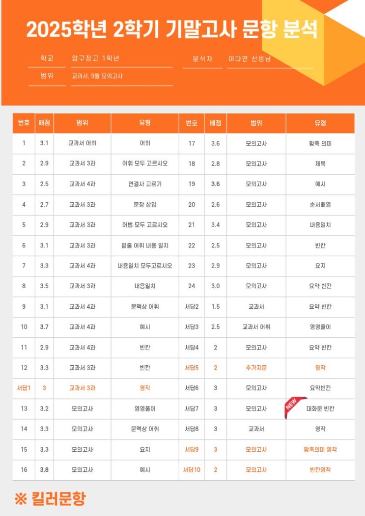 [손나래 영어학원 고등부] 25년 2학기 기말 압구정고1 영어 분석