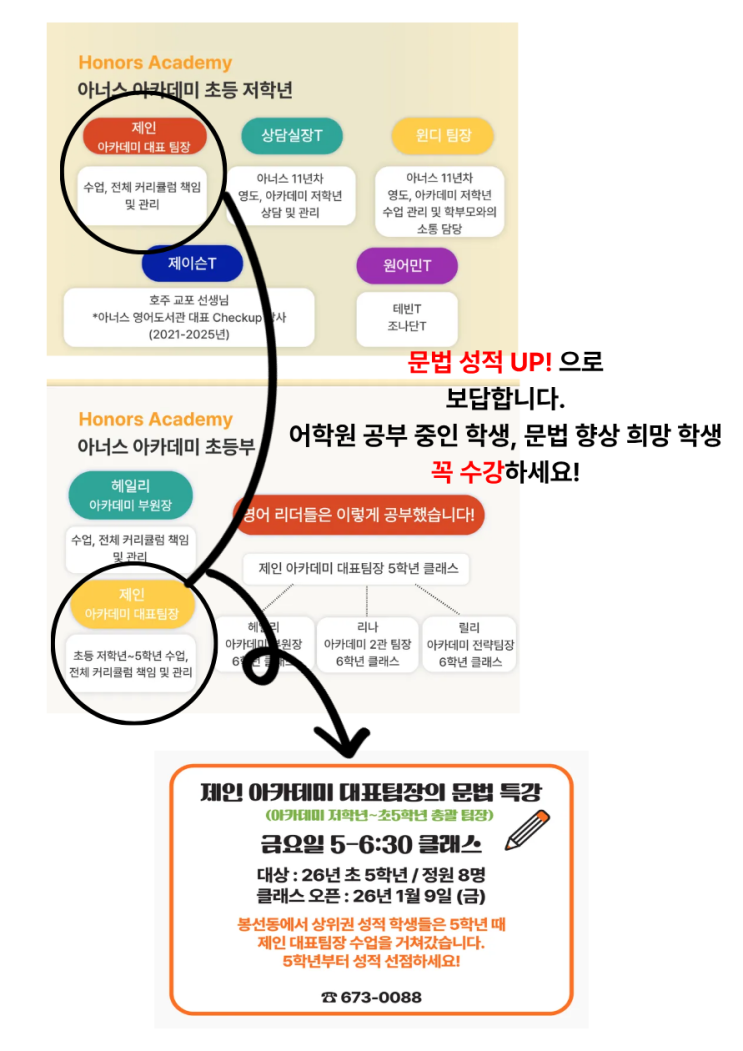 아너스 아카데미 초등 저학년 제인 아카데미 대표팀장 클래스 수강을 강력 추천드립니다!