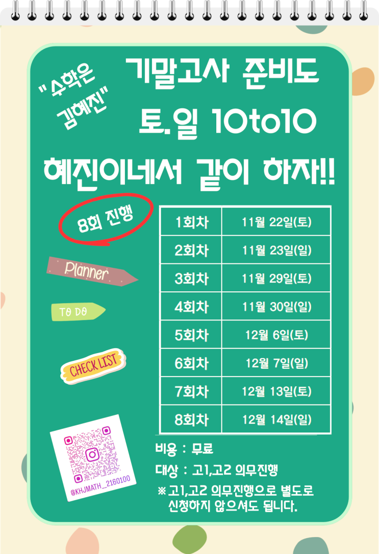 [고1,고2 의무진행]25년 2학기 기말고사도 혜진이네 "10to10"과 함께