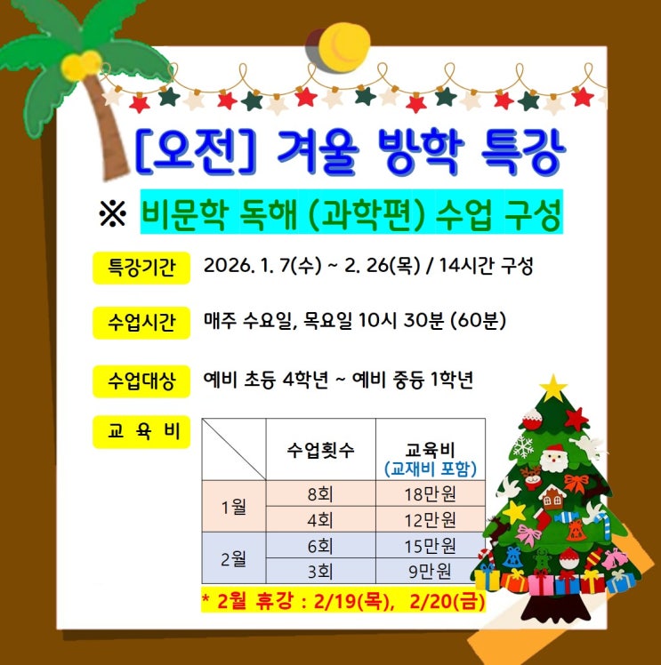 2026 은계 방학특강: 학기 전 독서·독해·사고력 완성 코스