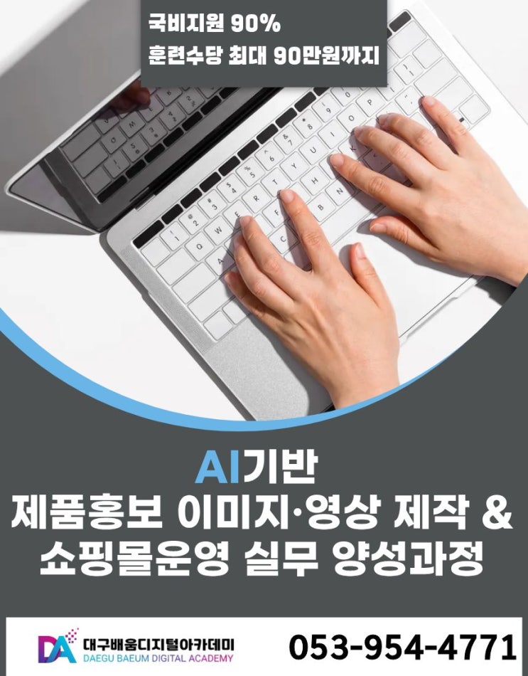바로 “홍보”입니다. 제품은 있어도 이미지를 만들 줄 모르고, 영상은 더 어렵고, 쇼핑몰 운영도 막막해서 시작을 포기하는 경우가 많습니다. 하지만 지금은 상황이 완전히 달라졌습니다 AI 기술을 활용하면 전문 지식이 없어도 누구나 직접 콘텐츠를 만들고 쇼핑몰을 운영할 수 있는 시대입니다. 이번에 대구배움디지털아카데미학원에서 진행하는 “AI기반 제품홍보 이미지·영상 제작 & 쇼핑몰운영 실무 양성과정”은 이 모든 과정을 한 번에 배울 수 있도록 구성된 실무 중심 교육입니다. ✔ AI를 활용한 이미지 제작 ✔ AI 영상 제작 실습 ✔ 쇼핑몰 운영 및 마케팅 전략 ✔ 실제 활용 가능한 포트폴리오 제작 특히 단순 이론이 아....... <img src="https://blogthumb.pstatic.net/MjAyNjA0MTdfMTIw/MDAxNzc2NDExNTY0MzU0.2m_mrpOkQe9KImTcDte7gKJjslVVOkPiVGCHP6Q-c5Ug.bhuOQiA_VqAF262oIR6n1KXkq0fei0euTH1H7A3kXJYg.JPEG/1.jpg?type=s3" />
