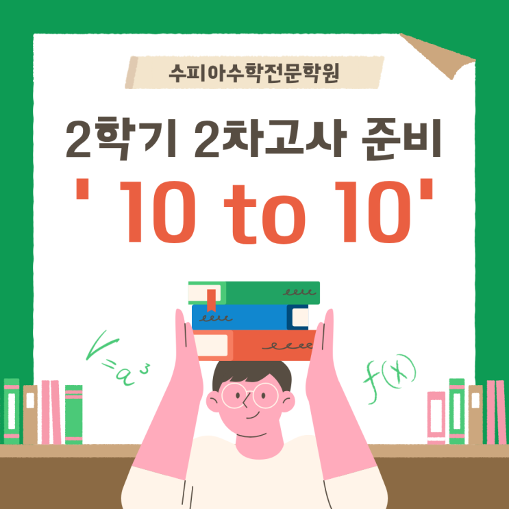 안녕하세요. 김해 율하 수학학원 수피아입니다. 어느덧 2학기 2차 고사도 막바지를 향해 달려가고 있네요. 그동안 시험 준비로 밤샘 공부도 마다않고 열심히 노력한 우리 학생들 모두에게 박수를 보냅니다. 최선을 다한 만큼 값진 결실이 있기를 수피아가 진심으로 응원합니다! 오늘은 저희 수피아 수학학원만의 특별한 시험 대비 프로그램 바로 '10 to 10' 이벤트에 대해 자세히 소개해 드릴까 합니다. 단순히 공부 시간만을 늘리는 것이 아니라 아이들이 스스로 학습의 주체가 되어 몰입하는 경험을 선물하는 수피아만의 철학이 담긴 프로그램이랍니다. '10 to 10'은 주말 아침 10시부터 밤 10시까지 오직 수피아 학생들을....... <img src="https://blogthumb.pstatic.net/MjAyNTEyMDdfMjQ3/MDAxNzY1MDgxOTU2Mzgx.EzyEiGKHZfAEgTdylLYvCbDDwca13qN5QJSjI08_FQog.dKxKQxHNzwvHj0mD-I0Gs2P3Wa_RlBmUZLY5GTdjWwMg.PNG/1.png?type=s3" />