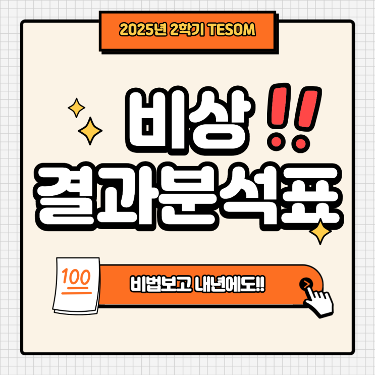 우리 노원지역내에서 그리고 더 나아가 전국에서 최상위수학학원이 1등 학원이 되었어요!! 안녕하세요. 노원구 상계동 상계주공1단지에 위치한 수학학원 최상위쌤입니다. 오늘 드디어 지난 11월 15일에 치른 비상TESOM 수학시험에 대한 상장과 분석표들이 도착했네요. 이번에는 응시학생들이 11명. "전원 수상"이라는 전통은 계속 이어집니다. 최우수상 10명! 우수상 1명! 최우수상 10명중에서 무려 5명이 본선 전국 수학경시대회 참가 자격을 획득했네요. 상반기 1학기 시험에서 3명 하반기 2학기 시험에서 5명 총 8명의 학생이 전국수학경시대회에 참가를 하게 되었네요. 올해초에는 태릉 화랑대역에 위치한 고등학교에서 응시했는데....... <img src="https://blogthumb.pstatic.net/MjAyNTEyMDlfMjYw/MDAxNzY1MjU1NTM5NDI4.ug0R-G6828mLP1N7vbwohPeRn7ZTfx4-tgK7ofmyne0g.A0SFe4uwJq2b9Nc0dLL-P2gSFG4a95UVI0ZX4G2CCjQg.PNG/%C5%D7%BC%D8_%B0%E1%B0%FA%BA%D0%BC%AE%C7%A5.png?type=s3" />