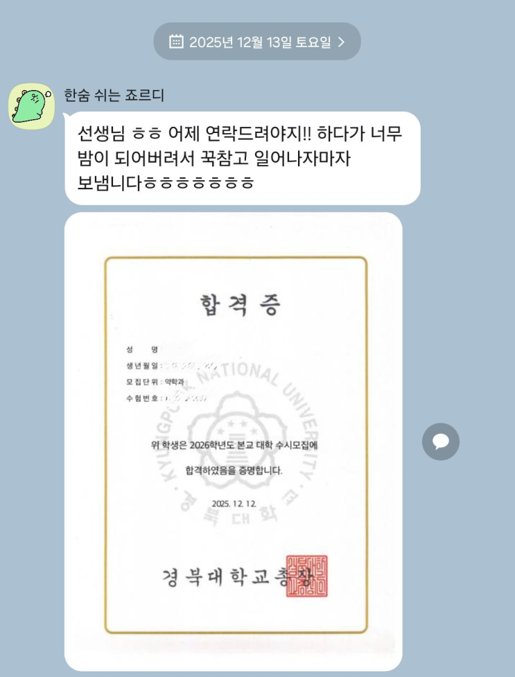 2026 이화멘토영어학원 대산고 고려대, 경북대 약대 합격 및 수시 결과