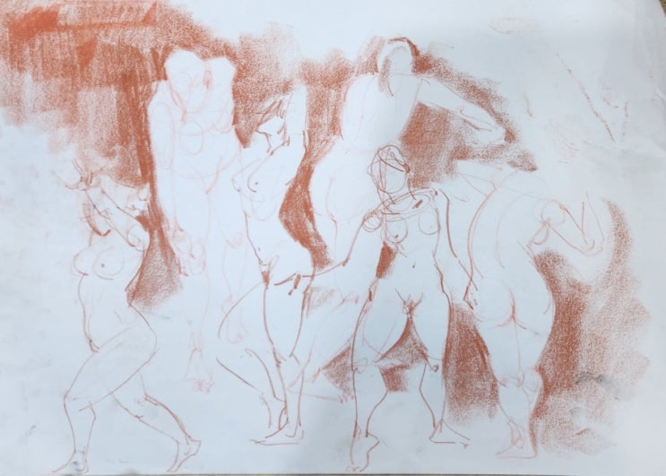 이번주 크로키 모델님 너무 또 좋아하는 분이 들어오셨고요 한당에 여러 포즈를 그려 보았습니다 손이 안풀려서 플러스펜으로 작게 그려본 여러 포즈들 5분포즈였는데 저도 얼굴 그리고 싶었으나 뒷모습 마지막 5분 드로잉들 마지막 포즈!!! 2분 크로킵니다 생략의 묘미 이번주도 즐겁게... 연말파티 끝나고 풀리지 않는 피로 속에서 크로키 진행했네요 #실전누드크로키 #이대역크로키 #수경화실크로키 #주말크로키 #일요크로키 #자유크로키 <img src="https://blogthumb.pstatic.net/MjAyNTEyMThfODQg/MDAxNzY1OTg2ODYwNzY2.QwN7c4OuSMupwcHW6h9SVWhjki-B4AmEBMi9GjwOD2Mg.HM1POj7MDe3Q8TWvkMs8egtXhYcHOKqi_ZpwRWryI0Mg.JPEG/900%A3%DF1280%A3%DF20251214%A3%DF170200.jpg?type=s3" />