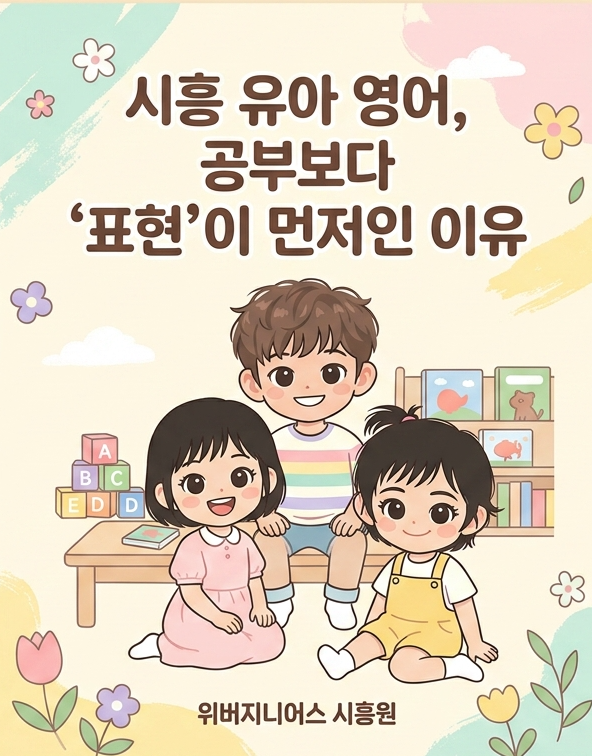 안녕하세요. 처음부터 다른 시작, 위버지니어스 시흥원입니다 유아 영어 교육을 고민하는 부모님들께 가장 많이 받는 질문이 있습니다. "우리 아이 영어, 지금 시작해도 될까요? 그냥 노출만 시키면 되는 건지, 체계적으로 가르쳐야 하는 건지 모르겠어요." 저희도 이 질문을 오랫동안 고민해왔습니다. 쉽게 답하기 어려운 질문이지만, 그래서 오늘은 위버지니어스 시흥원이 이 고민을 어떤 방식으로 풀어가고 있는지 이야기해보려 합니다. 영어, 시작 방식이 결정합니다 유아 시기부터 단어 암기·받아쓰기· 문제풀이 중심으로 영어를 시작하면, 아이에게 영어는 자연스러운 언어가 아닌 '해야 하는 과목'으로 각인....... <img src="https://blogthumb.pstatic.net/MjAyNjA0MTVfMjIy/MDAxNzc2MjI3MDMxMDI1.34IYsYi0y2kue88nMUSZZL8Az4RJ4tL5YYB3XFSMSB8g.dnuEmidzA7yV8gHgJGjkNwhaXxHtkO8c5hEUdeavXx0g.PNG/Create_an_Instagram_feed_card_in_a_45_ratio_as_a-1776215631416.png?type=s3" />