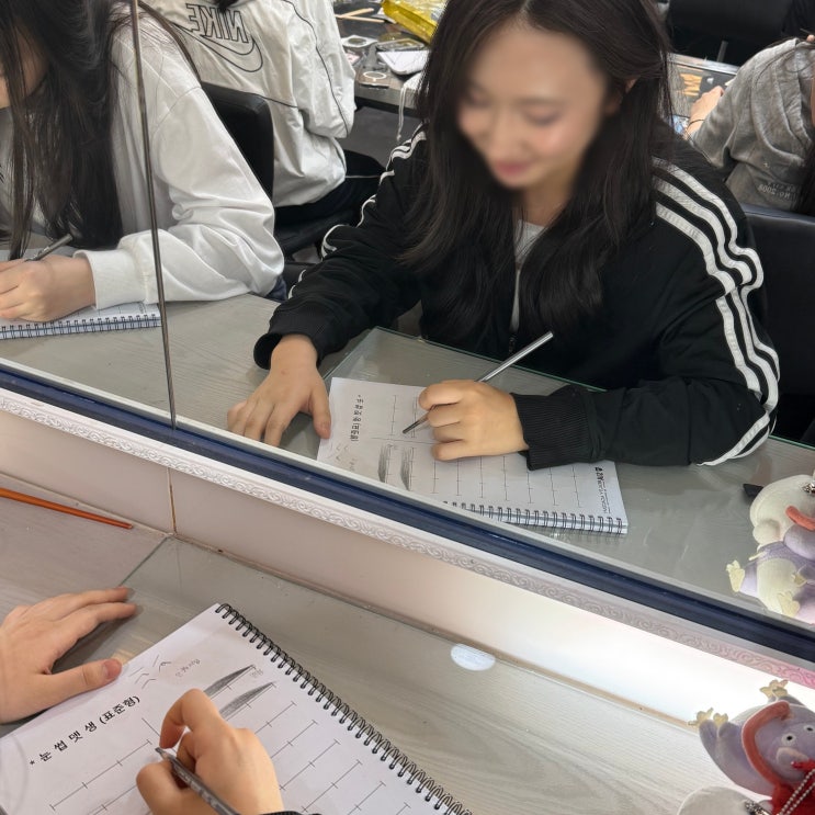 안녕하세요~ 전주메이크업학원 시아 뷰티아카데미입니다. 오늘은 메이크업 국가자격증 수업하고 있는 우리 시아 등이들의 모습을 카메라에 담아봤습니다. 각자의 진도에 맞춰서 수업에 열중하고 있는 모습을 함께 만나보시겠습니다 메이크업 수업의 시작은 눈썹 드로잉 기초 선잡기와 결 표현을 차근차근 익히며 실기에서 중요한 균형감과 정확도를 탄탄하게 다져가고 있습니다. 처음엔 다 기초부터 하는 거니까 왜 그림을 그려요? 이런 질문은 No!! ^^ 실기 과제 패턴북을 보며 셀프로 메이크업을 해보는 시간입니다. 도안을 눈에 익히고 직접 표현해 보면서, 과제의 흐름과 포인트를 자연스럽게 익히고 셀프로 작업을 하다 보면 모델에게 시술....... <img src="https://blogthumb.pstatic.net/MjAyNjA0MTlfMTAg/MDAxNzc2NjAzOTEwNzE3.BICQaP3Wlk1p0edC8Lq1BeyfoCCKkfoBnAhDXj-8gT4g.soMBkDyOi9_oM1dEEVPo3xWzugTaFWDrrSNGl1WPaNAg.JPEG/KakaoTalk_20260414_112958515_17.jpg?type=s3" />