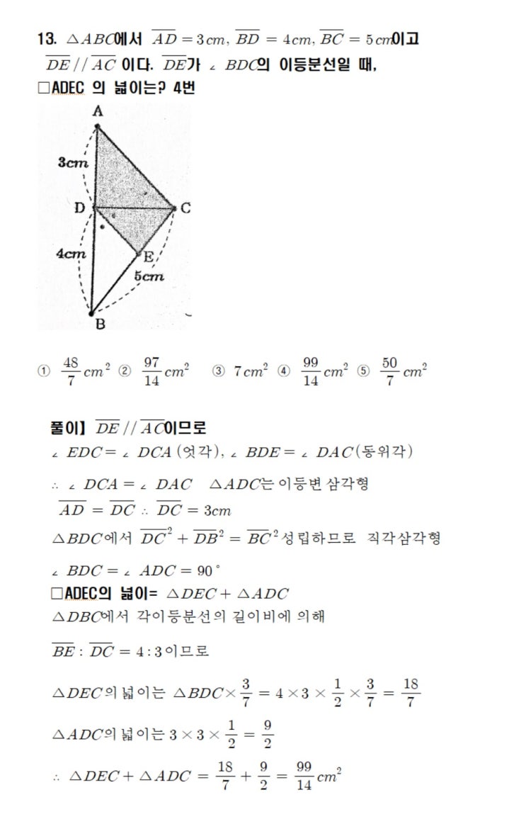 해강중학교 2학년 2학기 수학 기말고사 난이도분석