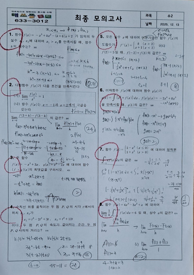 가양중학교앞 #원장직강 #중고등수학전문 #소수정예수업 #발표수업병행 #가양중 수업 #동대전중 수업 #명석고 집중반 #송촌고 집중반 #대전여고 집중반 #우송고 집중반 #수시반 운영 #정시반 운영 12월도 벌써 절반이 지나가고 있습니다. 지난주부터 중고등학교 기말고사가 진행되는 시기라 정신이 없었습니다. 주변 중학교 기말고사는 끝났고, 고등학교 기말고사는 끝난학교, 진행중인 학교, 다음주부터 시작되는 학교등등 다양합니다 ^^ 매쓰플수능수학은 시험보기 5일전에 모든 문제풀이를 끝냅니다 그리고나서 무한테스트를 통해 제한된 시간안에서, 얼마만큼의 빠른 계산력과 정답을 낼 수 있는지 점검합니다 정해진 시간내에 풀어야 하는 시....... <img src="https://blogthumb.pstatic.net/MjAyNTEyMTRfMTU4/MDAxNzY1NjkxMTMwMTI2.PEE01SH7_n5DqWIhsKU-m9vbznwd2vUxizf-tr3-iaAg.eTv1eWhF1_irv2l6Fu7c8aftv9PU7Rzbzn0UrWTYtckg.JPEG/KakaoTalk_20251214_142019117.jpg?type=s3" />