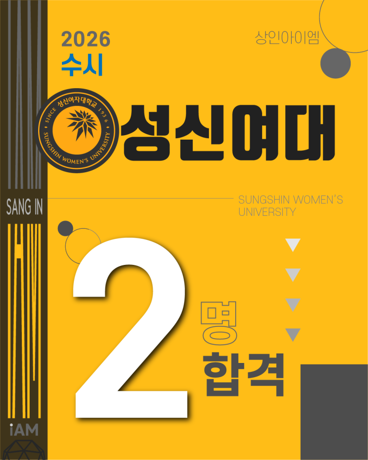 대구미술학원 상인동입시미술학원 신월성미술학원 상인아이엠 입니다 오늘 올 해 수시 마지막 합격자들을 쏟아내는 날이라, 수업도중에도 이곳 저곳에서 소리들이 끊이질 않습니다 합격의 함성과 탈락의 한숨이 번갈아가며 냉탕 온탕을 쉴새없이 넘나드는 중입니다 이제 마지막 대학까지 모두 확인하였습니다 이번엔 2026학년도 성신여대 수시 합격자를 소개해 드리겠습니다 상인아이엠의 성신여대 수시 합격자는 모두 2명며, 최고의 재원들입니다 2026학년도 성신여대 수시 합격을 진심으로 축하합니다! 2026학년도 성신여대 수시 2명 합격 2년연속 성신여대 수시 합격자 배출 2026 성신여대 수시합격을 진심으로 축하합니다! <img src="https://blogthumb.pstatic.net/MjAyNTEyMTJfMjUx/MDAxNzY1NTIyOTk2OTAx.jti4miphGBsG1RjG3SwSQSg1hkVigGMWoBLcRGz9xygg.s-FaO6wrB4M88IUEFzdhqJYNiZ2sNJMwfUNci2YJk1wg.PNG/KakaoTalk_20251212_145451802.png?type=s3" />