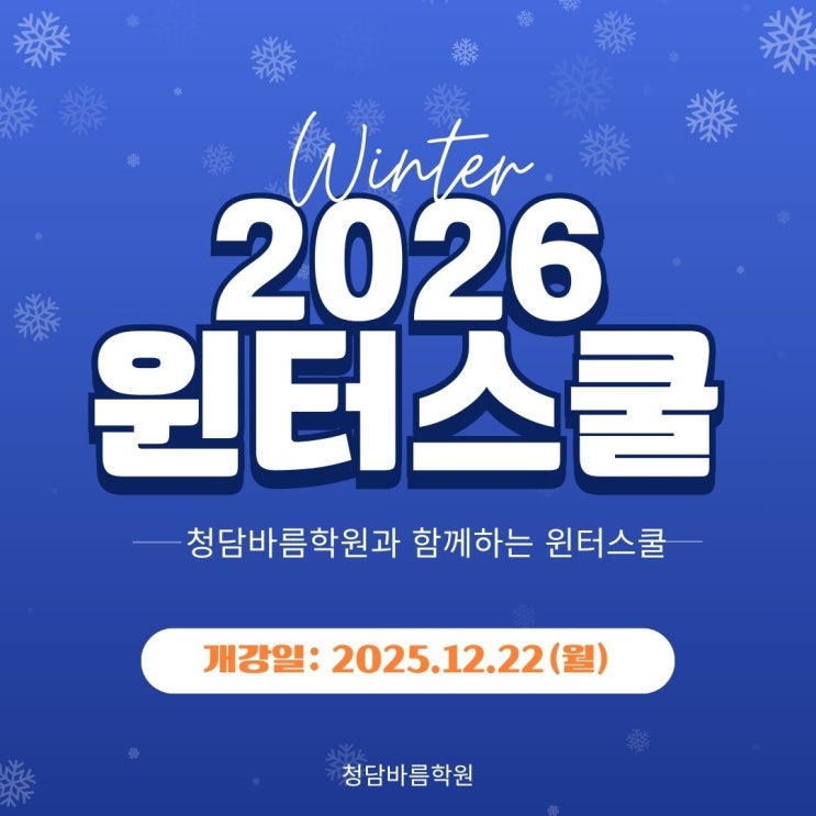 2026 윈터스쿨 시작|청담바름학원 겨울방학 특강 안내