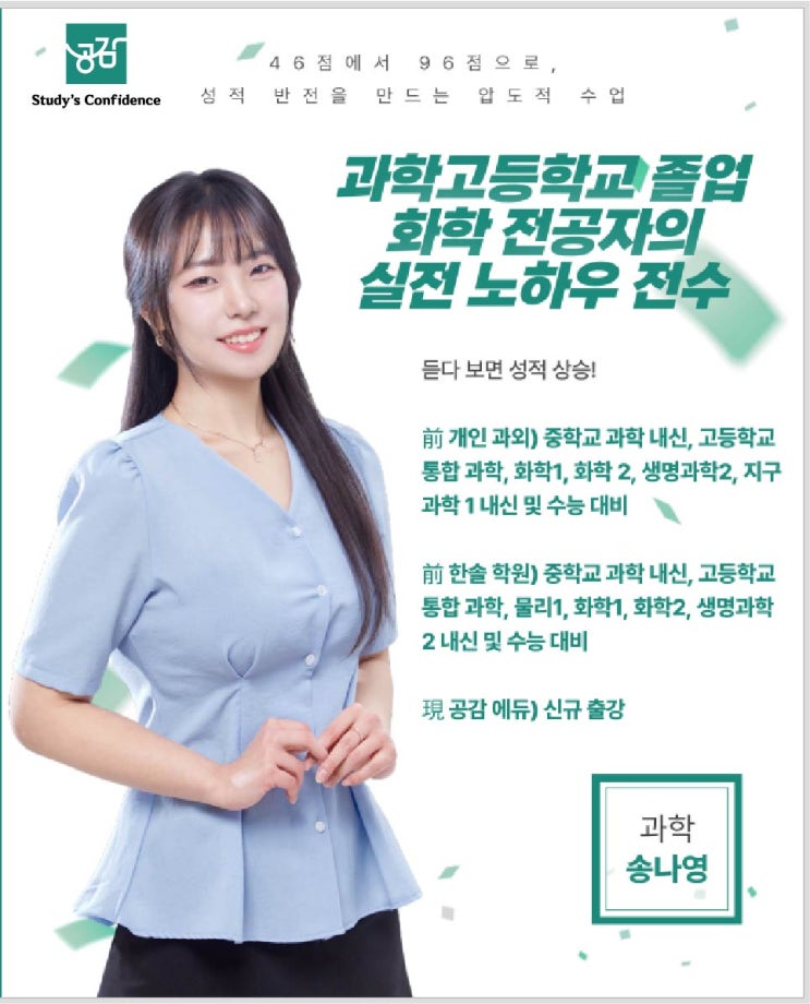 하남시과학학원 1위! 과학고 출신 화학전공 송나영 선생님의 실전 노하우 – 생명과학·지구과학·화학·물리 완전정복 시스템 공개