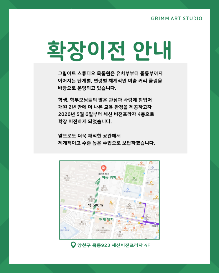 목동 미술학원 그림아트 스튜디오, 새로운 공간에서 다시 시작합니다!