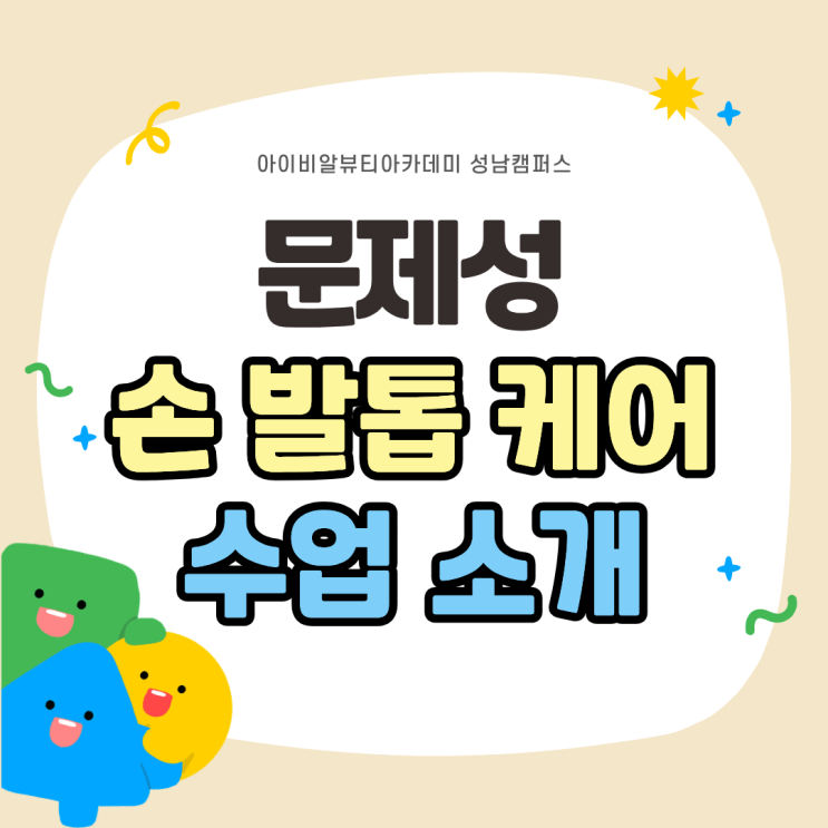 요즘은 단순히 예쁜 네일아트를 넘어서, 건강한 손·발 관리에 대한 관심이 점점 높아지고 있어요 특히 발톱은 평소 관리가 소홀해지기 쉬운 만큼, 문제성 발톱 케어의 중요성이 더욱 강조되고 있는데요! 안녕하세요, 아이비알뷰티미용학원에서 강의하고 있는 이영화 강사입니다 ✨ 오늘은 많은 분들이 궁금해하시는 문제성 발톱 케어 수업에 대해 자세하게 소개해 드릴게요! ✔️ 문제성 발톱 케어란 무엇인가요? 문제성 발톱 케어는 단순한 미용을 넘어, 변형되거나 손상된 발톱을 건강하게 관리하는 전문 기술이에요. 내성발톱, 두꺼워진 발톱, 변색된 발톱 등 다양한 문제를 안전하게 케어하면서 고객의 불편함을 줄여주는 것이 핵심....... <img src="https://blogthumb.pstatic.net/MjAyNjA0MThfMTM1/MDAxNzc2NDgwMzM1NTg1.pV2d1CyIZQiSTRBylfxe46Mhp3AQzDtBDq_QOhRWTQQg.d-DP_MjZhd0vMW5r_jj3uIvOit4XjK6YKRd1hjPHHVkg.PNG/3.png?type=s3" />