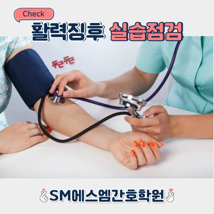 안녕하세요 오늘은 활력징후 수업 이후 잘 복습했는지를 확인하는 날입니다~!! 두근두근❤️ 우리 22기 수강생들의 두근두근한 실습 점검 날의 근황을 보러 가볼까요?? 선생님이 지켜보시는 와중에 배웠던 내용을 실습해 보고 있는 우리 22기 수강생들!! 손소독을 먼저 해주고~ 파트너와 서로 체온을 측정해 줍니다!! 연습했던 것과 같이 침착하게 잘 하고 있는 우리 수강생 여러분들~ 청진기 소독도 꼼꼼하게 해줍니다!! 항상 청결이 최우선이죠!! 너무 기특하고 대견해요 소독 후 파트너의 혈압을 측정해 줍니다~ 커프를 감는 방법과 맥박이 잘 들려서 제대로 측정하는 것!! 다들 많이 연습한 만큼 잘 해내고 있었어요!! 이제....... <img src="https://blogthumb.pstatic.net/MjAyNTEyMDRfMjgg/MDAxNzY0ODUzNTM3ODI1.Edq-bR1aVlhszuz0E8_EvVrfvRmft5lc9cleTed2vg0g.eLTVMQvTDzDFox8vBvKNw4uTrgP5yRy5RlKBNLdDFDYg.JPEG/%C1%A6%B8%F1%C0%BB_%C0%D4%B7%C2%C7%D8%C1%D6%BC%BC%BF%E4..jpg?type=s3" />